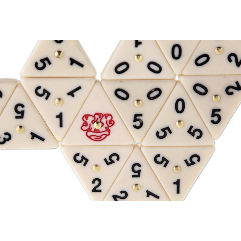 Domino de forme triangulaire avec trois modes de jeu différents.