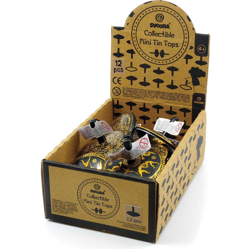 Une collection de toupies en fer blanc (tige en plastique) à collectionner.