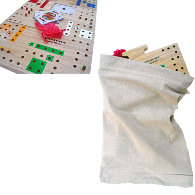 Bois hévéa massif, 3 plateaux connectables pour jouer de 2 à 6 joueurs.