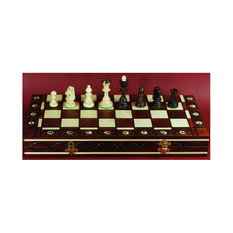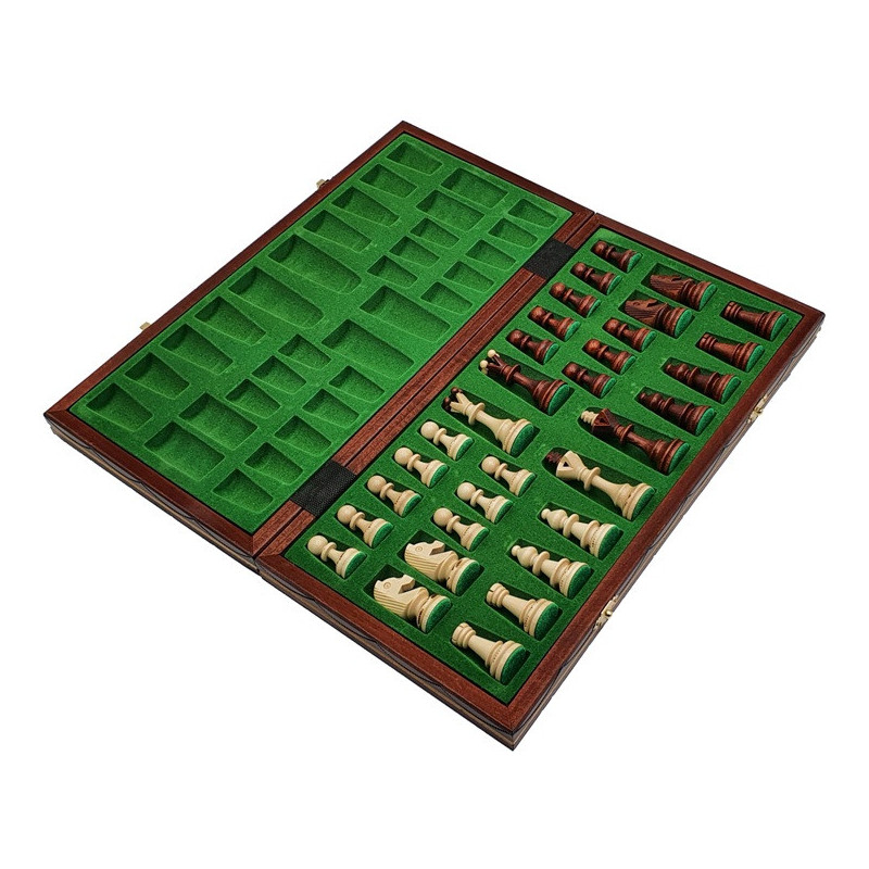Jeu d'échec Senator format valise (la boite se replie avec les pions rangés à l'intérieur dans une feutrine) en bois massif.