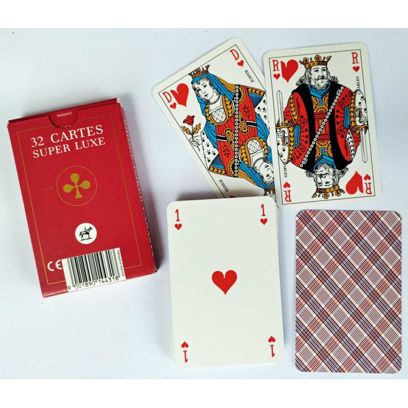 Ce jeu de Belote se compose de 32 cartes aux portraits et formats français.